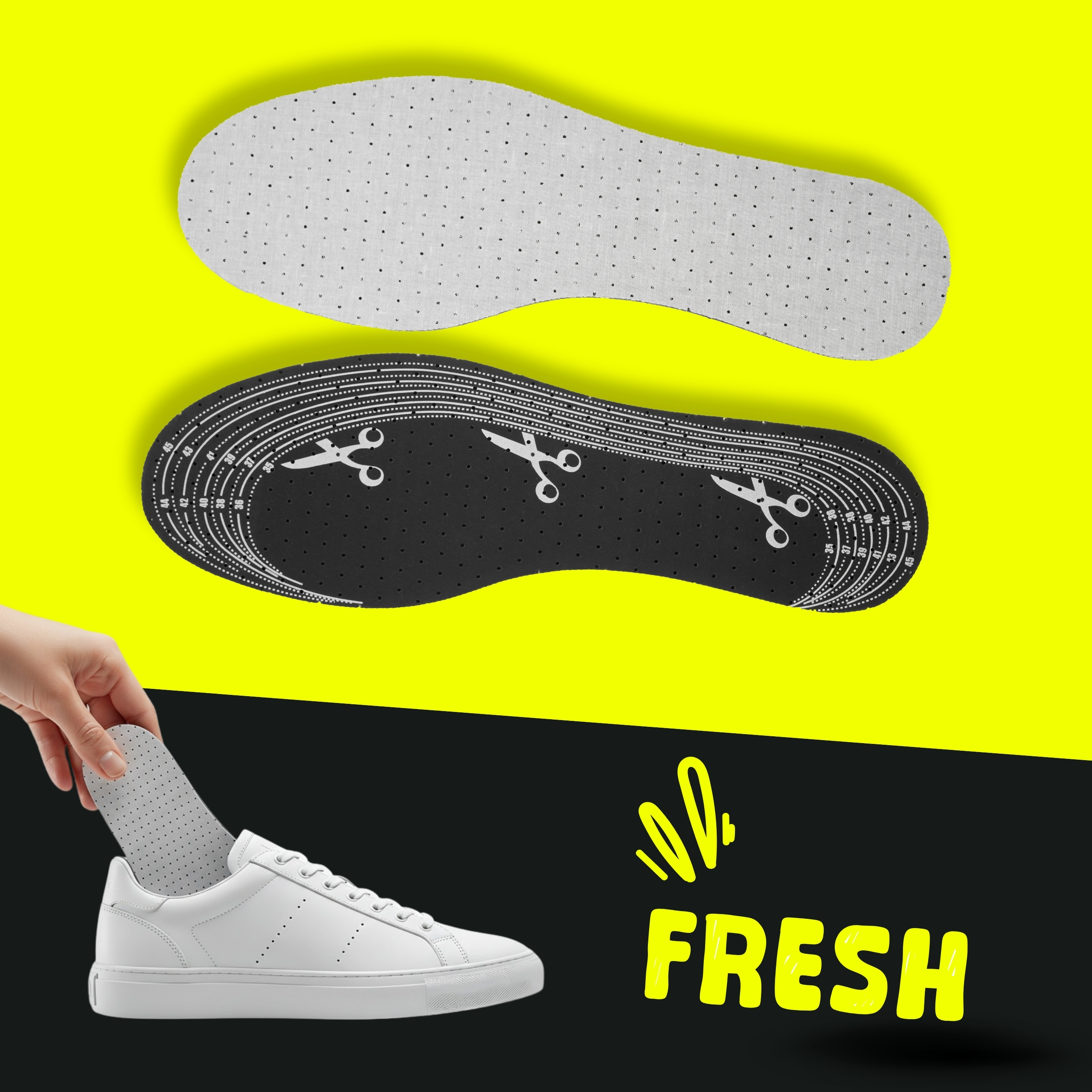 Wkładki Fresh'n Go Palmerston są zaprojektowane tak, aby można je było łatwo przyciąć do odpowiedniego rozmiaru. Na wkładkach znajduje się specjalny znacznik, który ułatwia dopasowanie do stopy. Wystarczy użyć nożyczek, aby dostosować wkładki do swoich potrzeb.